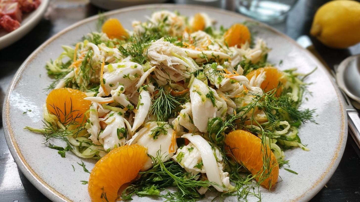- Serve immediately for optimal freshness. Present your exquisite crab salad with citrus and fennel right away to enjoy the crisp textures and vibrant tastes at their very best.